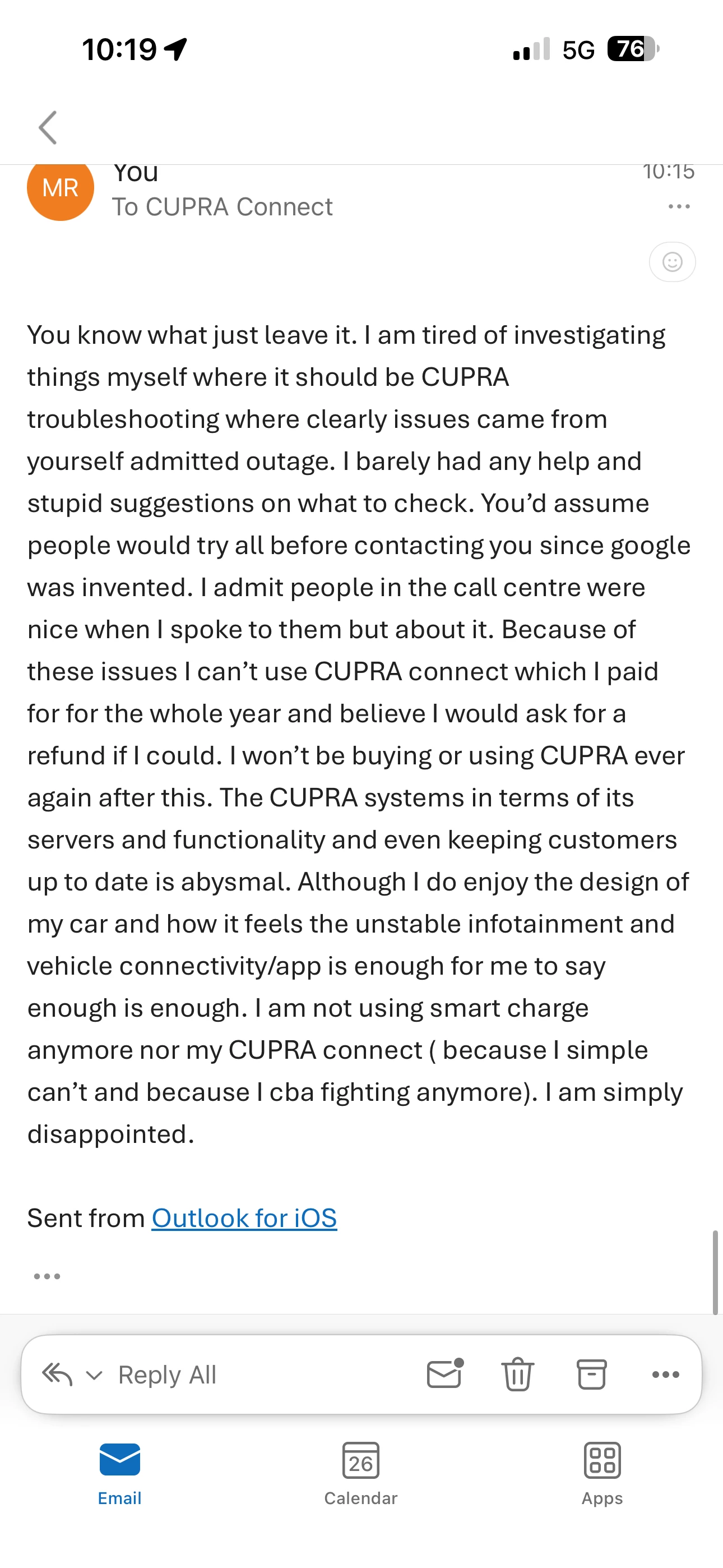 I recently purchased a CUPRA Formentor Hybrid. I enrolled in the Charge Anytime. The app worked brilliantly for a week or so and today I noticed something was wrong. I connected my car to change it and the app couldn’t not detect it, simply said car is unplugged and odd thing was it connected with the car last at 5:30 am… it was after 15:00 when I noticed that. I thought I’d remove the car from charge anytime app followed by app removal and re adding it all. All I get now is a screen where my schedule should be that says : Please wait few minutes whilst we finish connecting to your CUPRA. I raised it with them too but they simply responded it’s out of their scope and they can’t see any issues. Has anybody experienced anything like this before? How was it fixed? Thanks