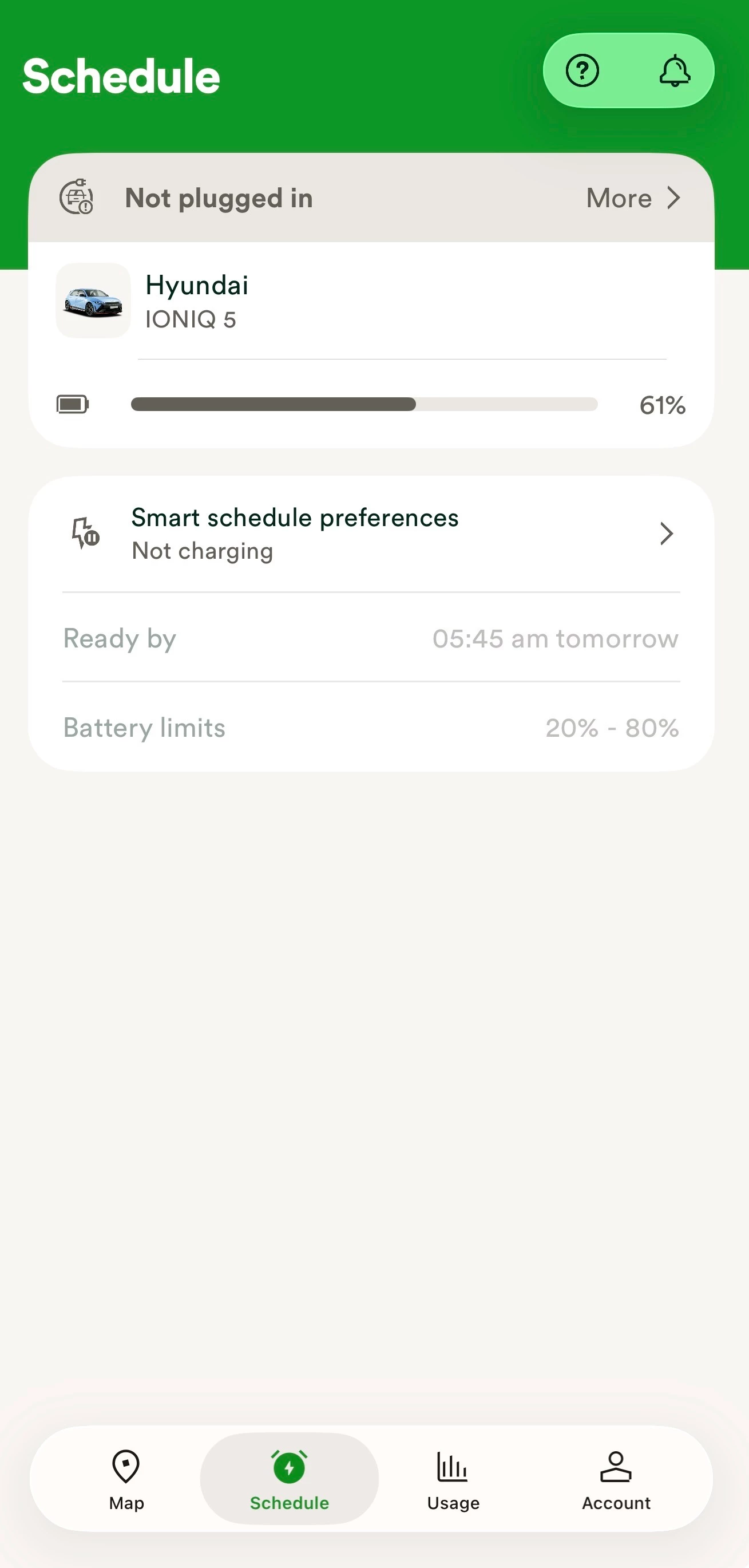 Now with a Hyundai (I appreciate it’s a beta car) the OVO app finds the Hyundai app and car all ok, reads the charge level and knows the charge is increasing if its charging so the data transfer is live between the car and OVO. Yet the OVO app says the car is not plugged in and therefore won’t schedule a charge.