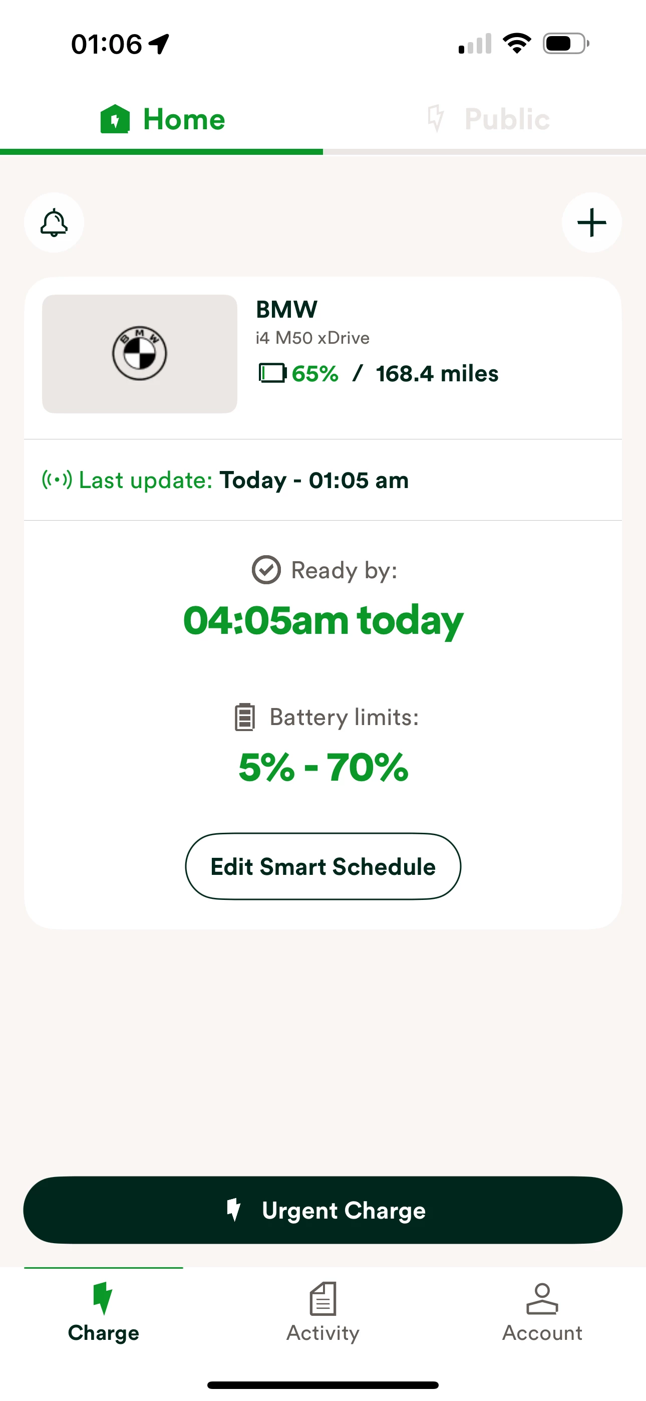 When I first plug the car in it immediately starts charging (because that is what you have told it to do) and tells you the time that the desired charge will be achieved. I stop the charge using BMW app. Pop the BMW calculated time in the OVO app as the required by time (maybe add 5 or 10 mins). Normally after a few minutes the OVOCharge app catches up and generates a schedule.