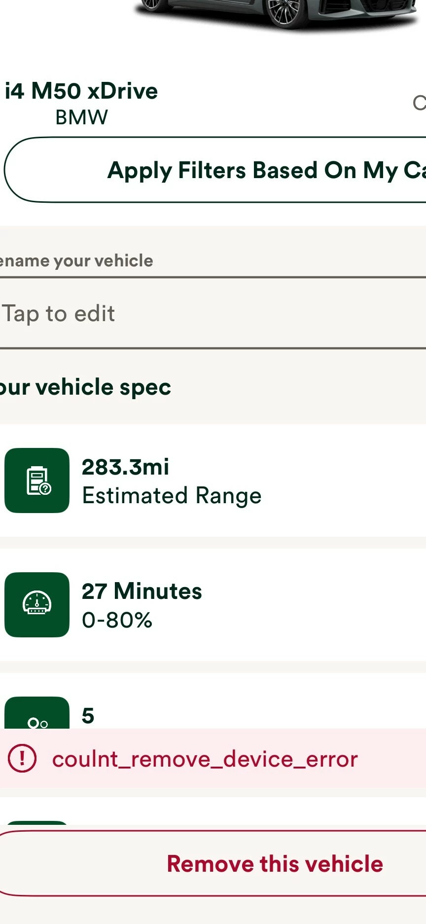 I am unable to delete the car from my account using either OVOCharge or Charge Anytime apps, I get the message ‘! coulnt_remove_device_error’
