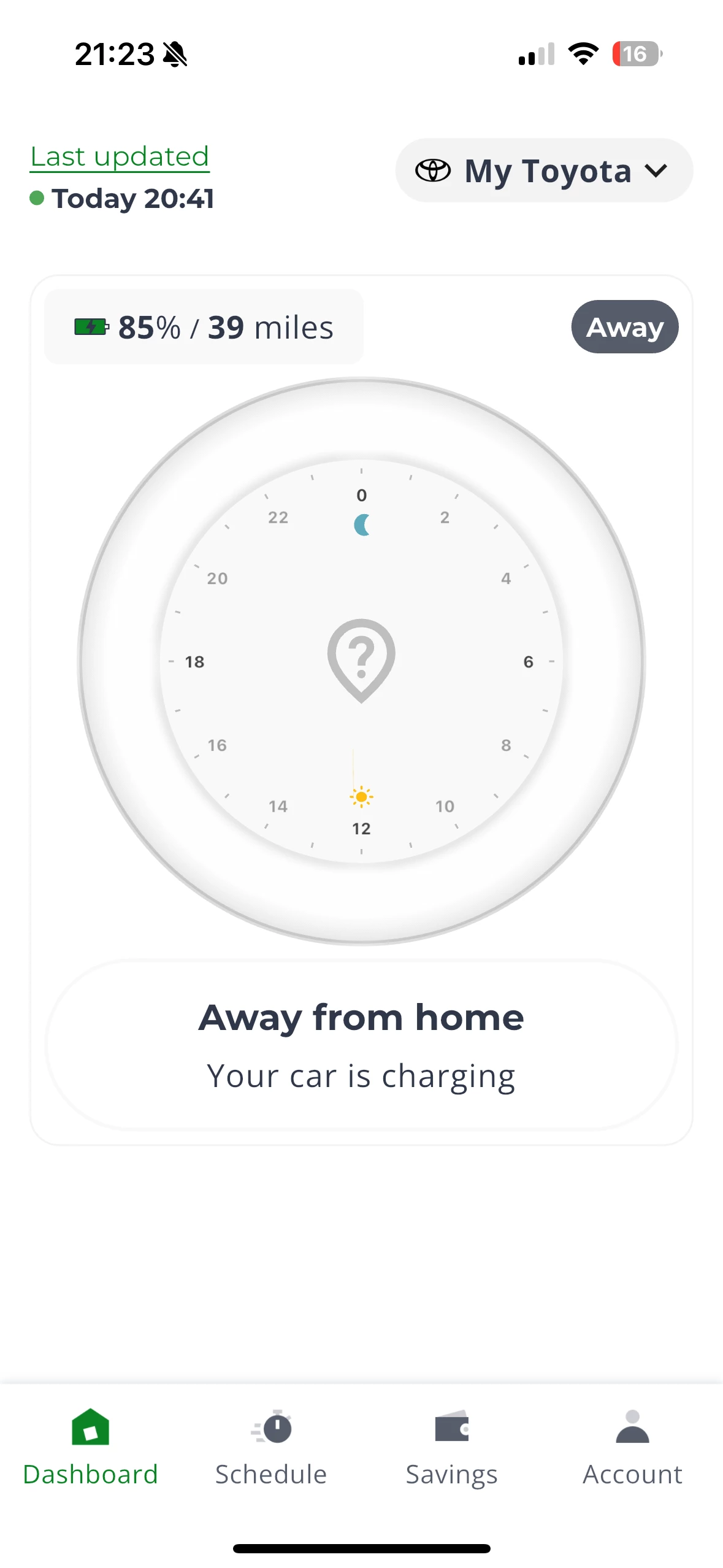 Just updated app to 2.2.0. Was working yesterday without problem. Today the app says I am charging away from home (I’m not) and does not show anything on the dial (it did yesterday). Anyone else having problems? - That said it has just charged to maximum.
