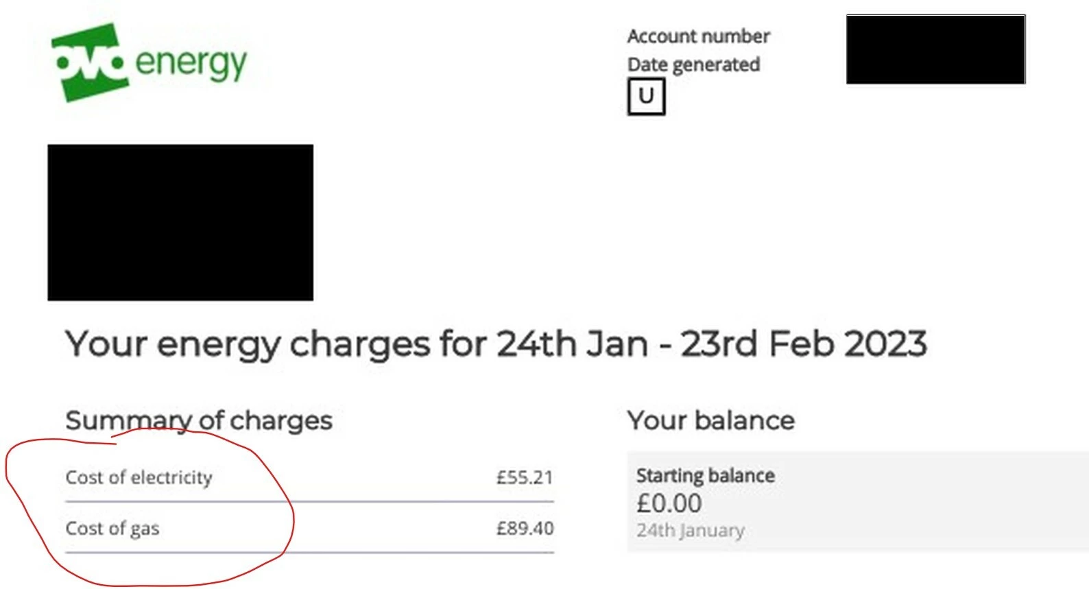 Those January 2023 bills were seperate and both said “SSE part of the OVO family” at the top.