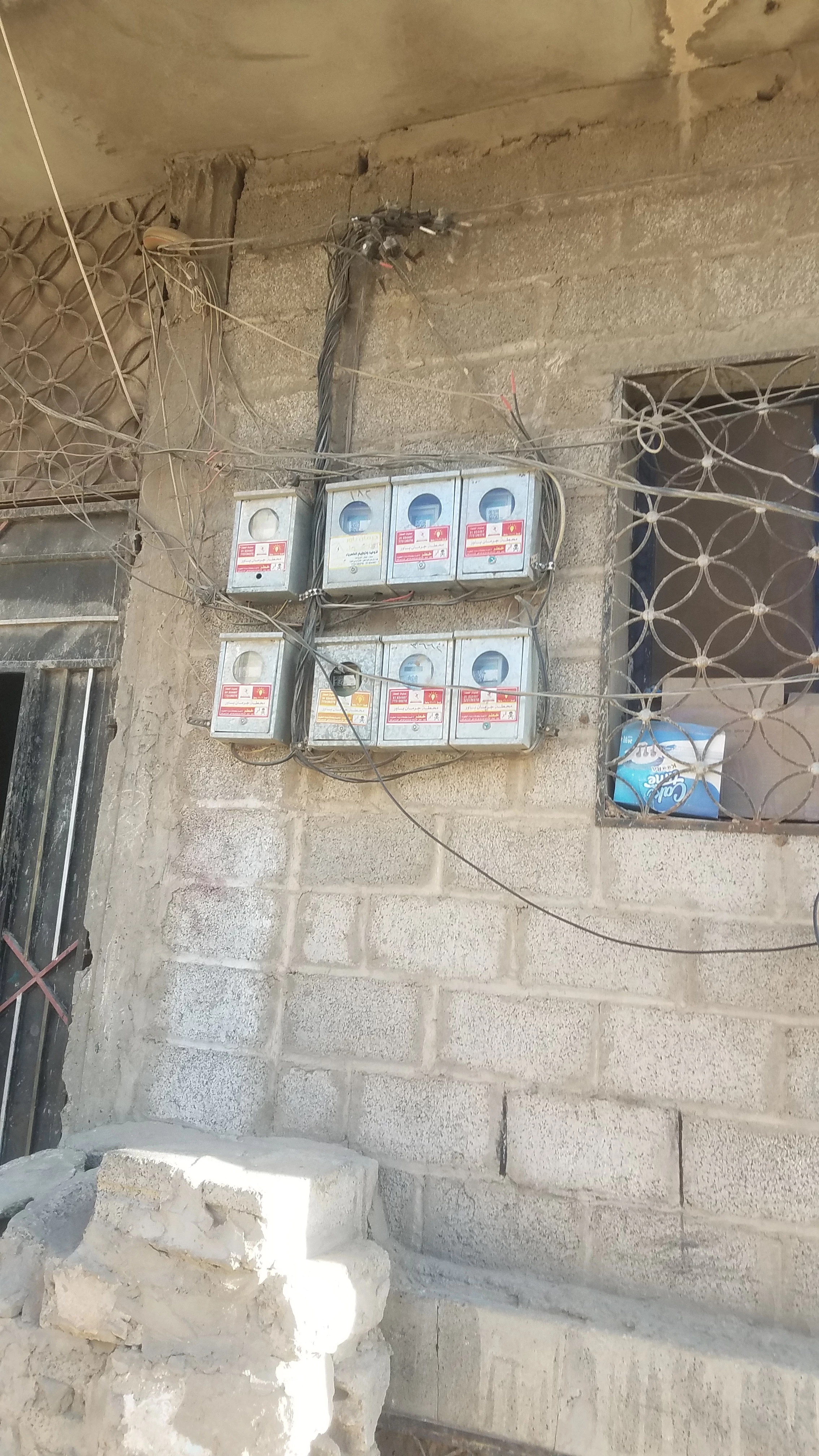 The "Bird's Nest": This is a chaotic junction of "Live" and "Neutral" feeds. It appears to be a mix of official state power and potentially private generator lines all spliced together using IPCs (Insulation Piercing Connectors). The state supply from the Ministry of Electricity (MoE) is cheap, but also known to be unstable and only run for limited hours - the private generators are expensive but cover the remaining hours (and they literally are on street corners run by private individuals). Some of the wires are from the state supply, others from the private generators - but they all converge at the same point, hence the bird’s nest.