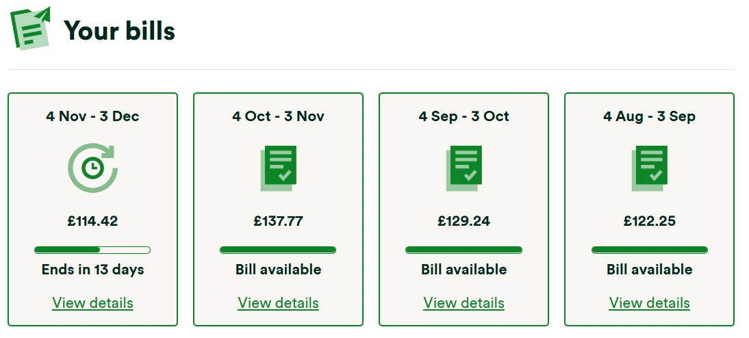 With your average usage, rates and standing charges, your average monthly cost is approximately £162 per month.