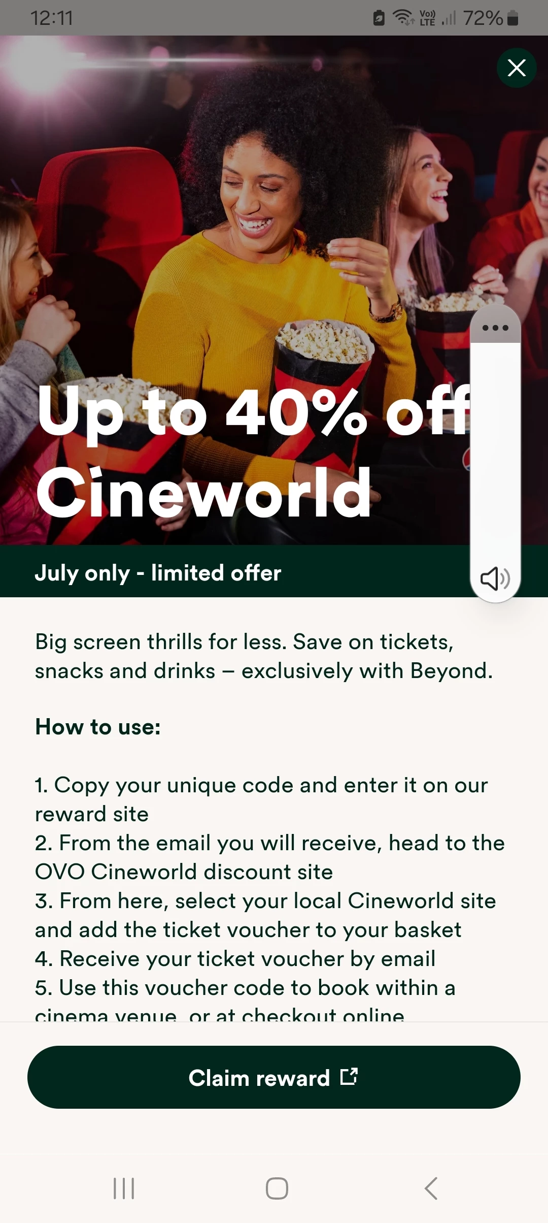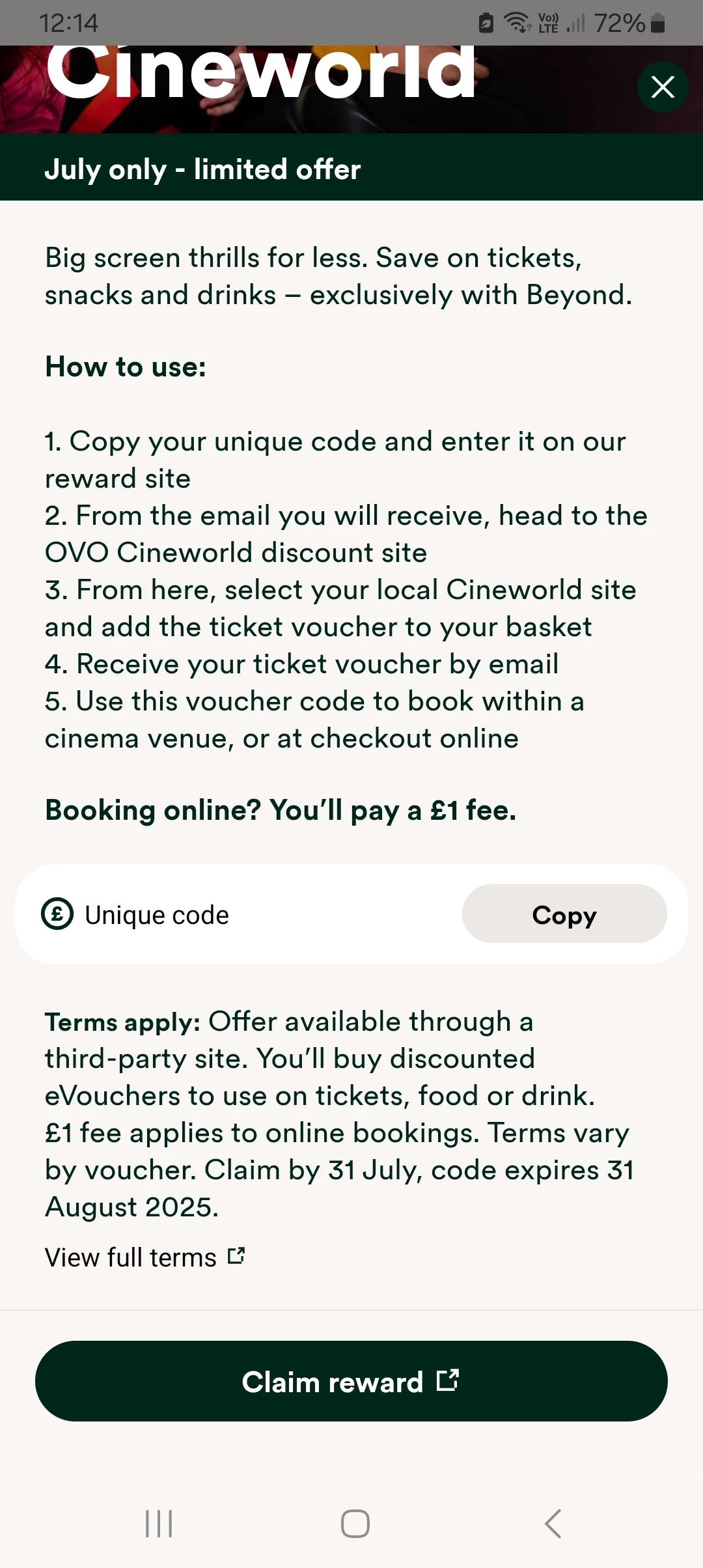 Cineworld reward redemption