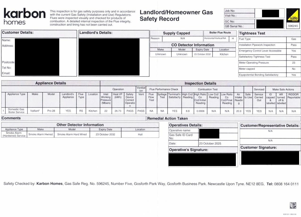 Presumably this was the annual inspection for the Landlords Gas Safety Cretificate?