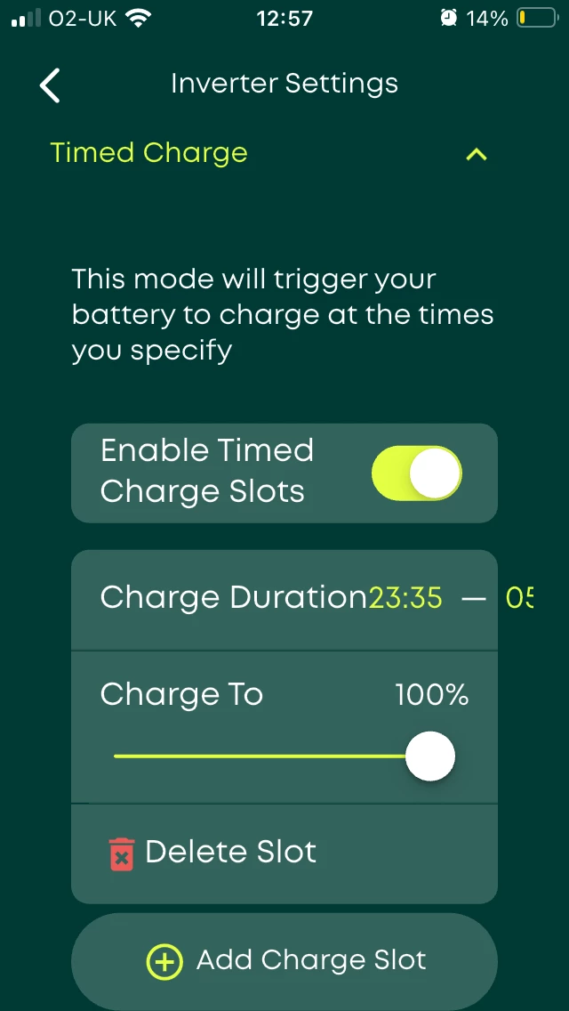 I recently had a GivEnergy 9.5 battery installed to work with my solar panels. I am having difficulty getting the battery to charge manually via the app or online. I contacted GivEnergy and have been advised that there is an API ? in place with OVO and this may be stopping me setting a charge time to make use of my off peak periods (economy 10 with smart meter) I set it to charge manually for eg. 1 hour and it stops charging after about 10 mins 🤷♂️ Can anyone offer any advice please ?