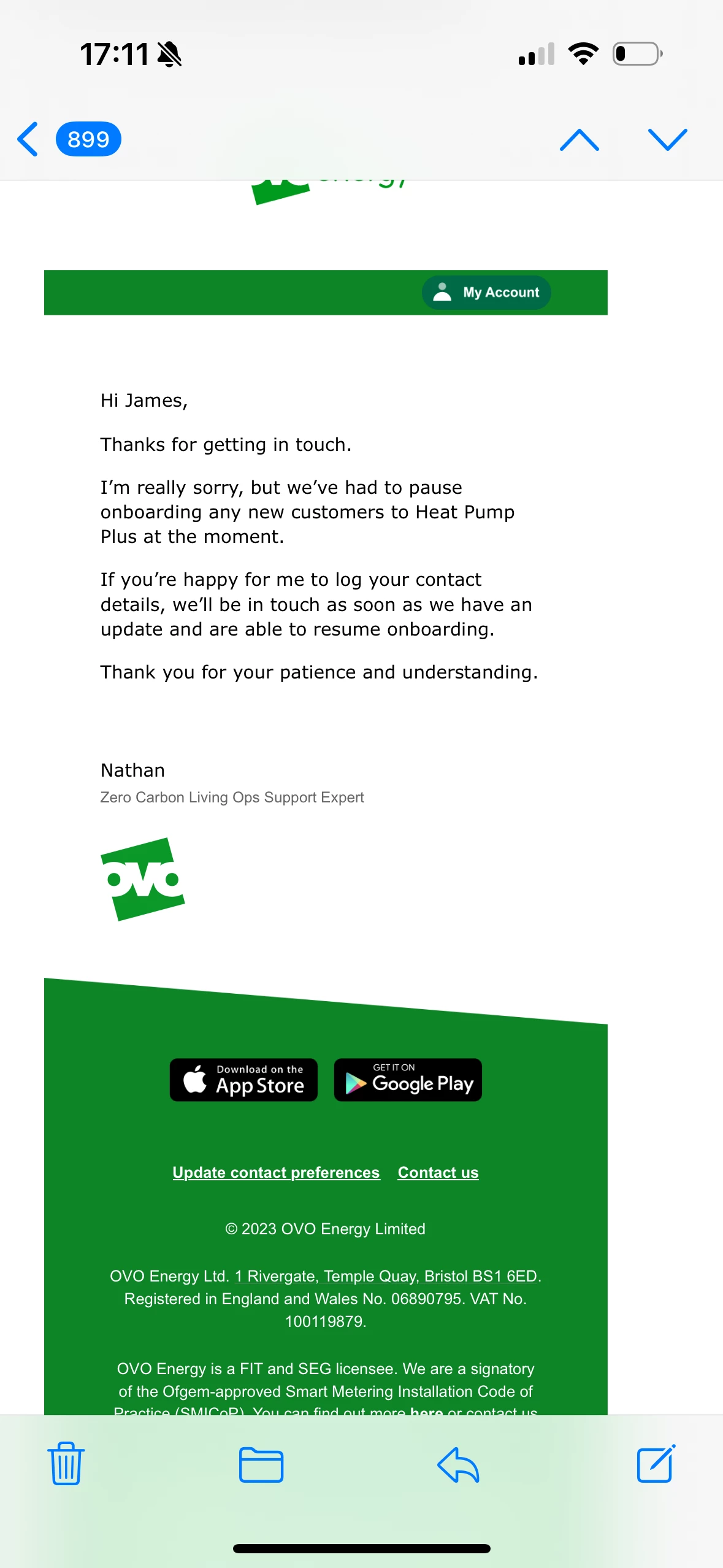 Hi, I signed up to move over to OVO yesterday and gave all my details for Heat Pump Plus. But was emailed today saying they’ve paused onboarding new customers.
