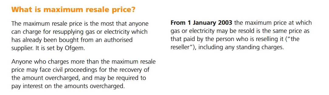 With that arrangement the landlord buys the gas/electricity from the supply company, and then “resells” it to the tenant. (See below about pricing).