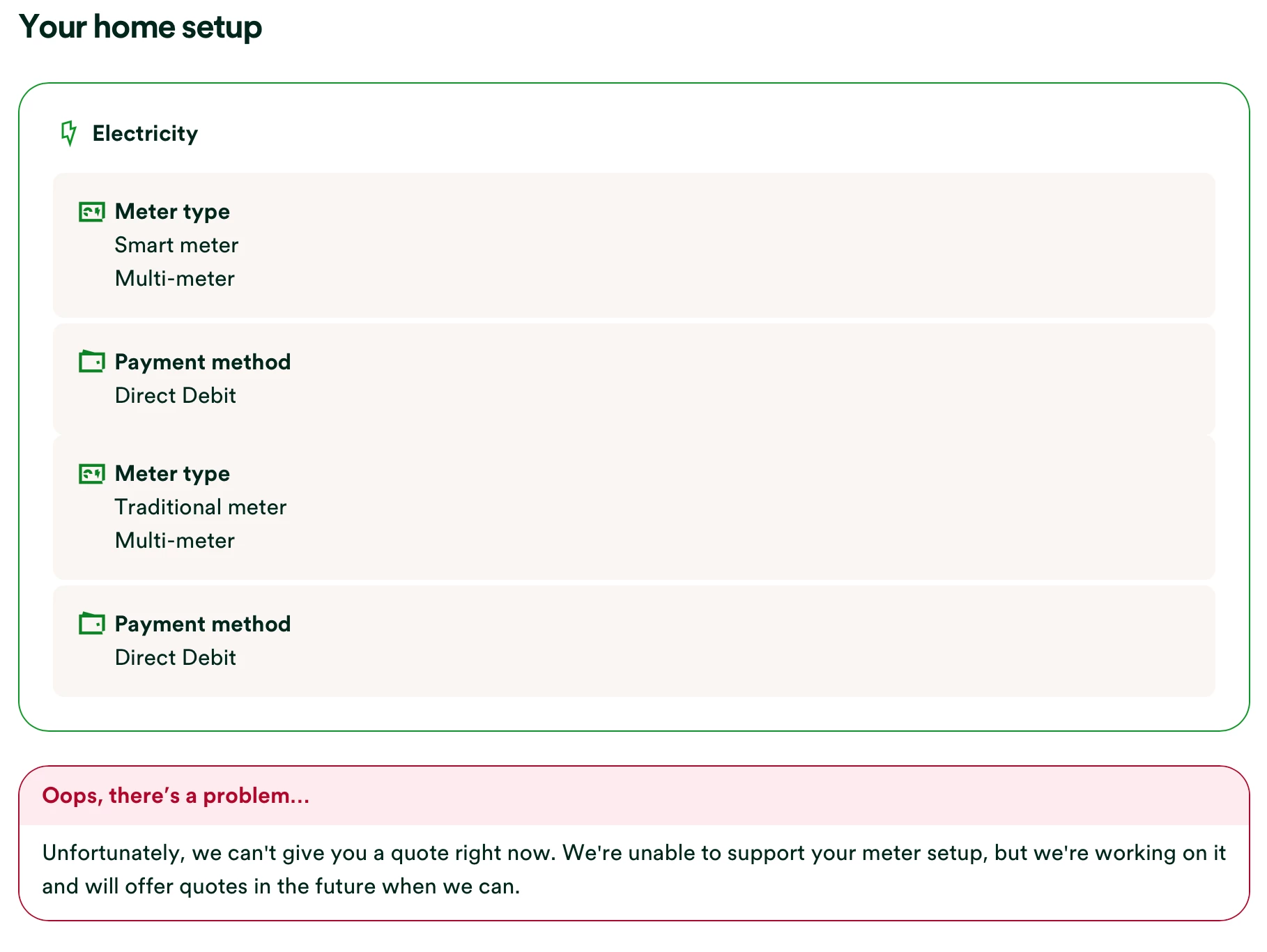 Fast forward to now and I’ve been looking at electricity prices due to the Iran issue and noticed that OVO never appeared in any results so I went to their website and entered my details and got this.