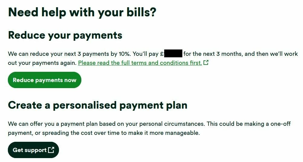Practical measures that you can take: You may be able to reduce your DD by 10% yourself on your online account. I'm not sure if you will be shown that option being a new customer. (Although I note you are on a Fixed Loyalty tariff, so presumably you were an OVO customer before the move). Go to the Direct Debits section and go through the pages until you get to ‘Change my DD amount’ https://account.ovoenergy.com/payments/direct-debit/change-ddamount Scroll down and see if this is available to you: