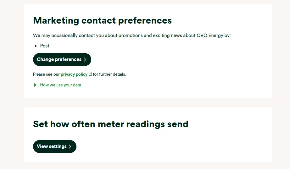 If you’ve recently signed up to OVO, but have a smart meter installed by another supplier, your meter may be sending monthly readings. If it was installed by OVO, we would’ve asked you how often you wanted your meters to send readings. This preference can be changed at any time.
