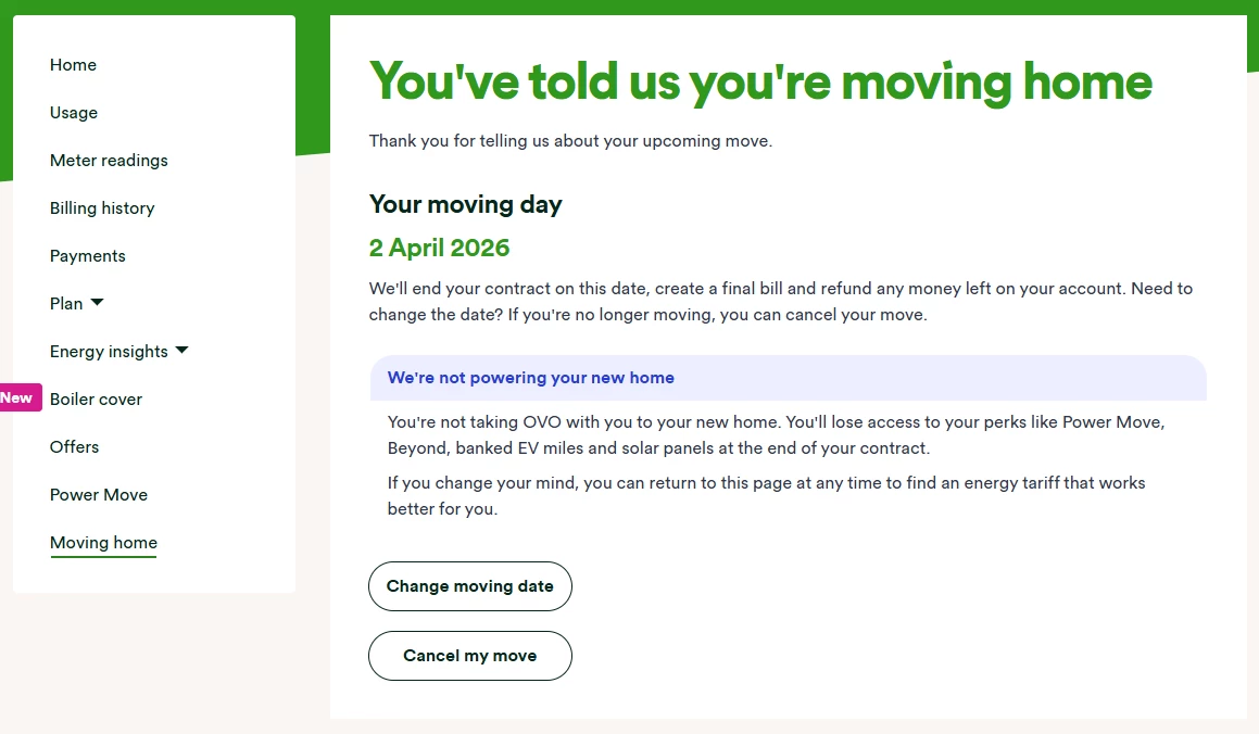If you’re supplied by OVO and are moving to a new home, you can complete the move out process via your online account . We’ve run through the process in detail below.