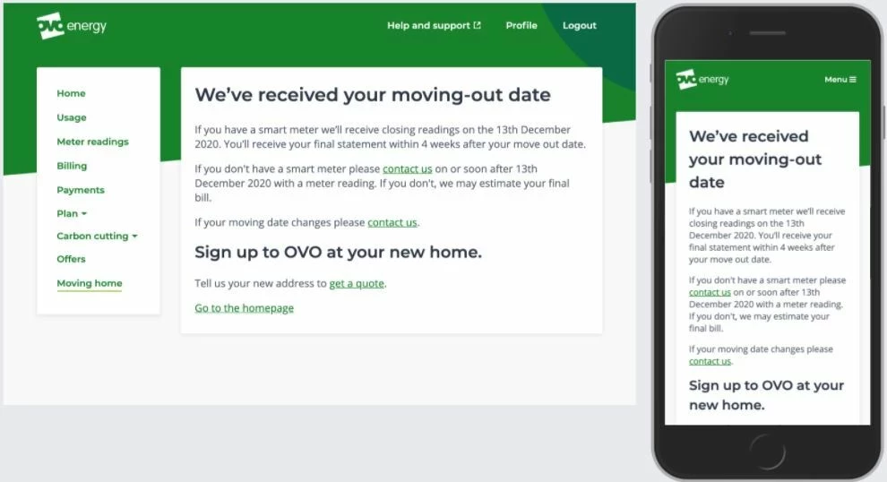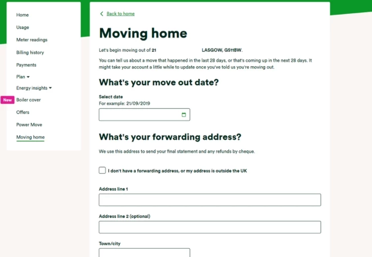 You can also do access this same process via the app by going to the account section by clicking the person icon, then ‘Tell us you’re moving’ under the ‘Your home’ section.