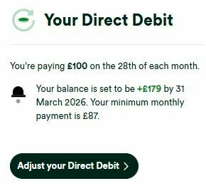 With the existing DD of £115, that means we would be at a generously rounded £220 credit come April 2026.