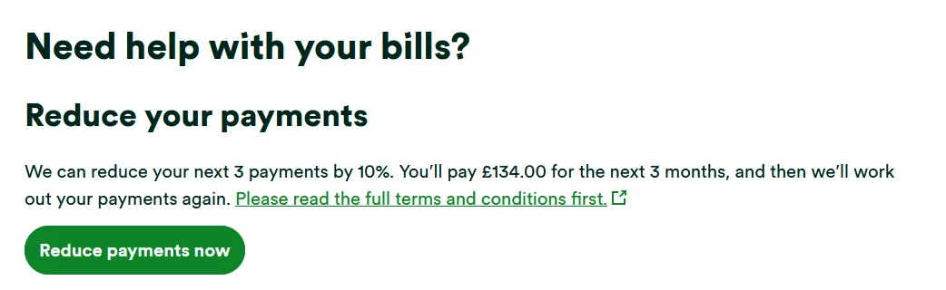 If you see that and click on the “Reduce payment now” it will immediately reduce your next three payments to the amount given (ie. there I could have changed mine to £134)