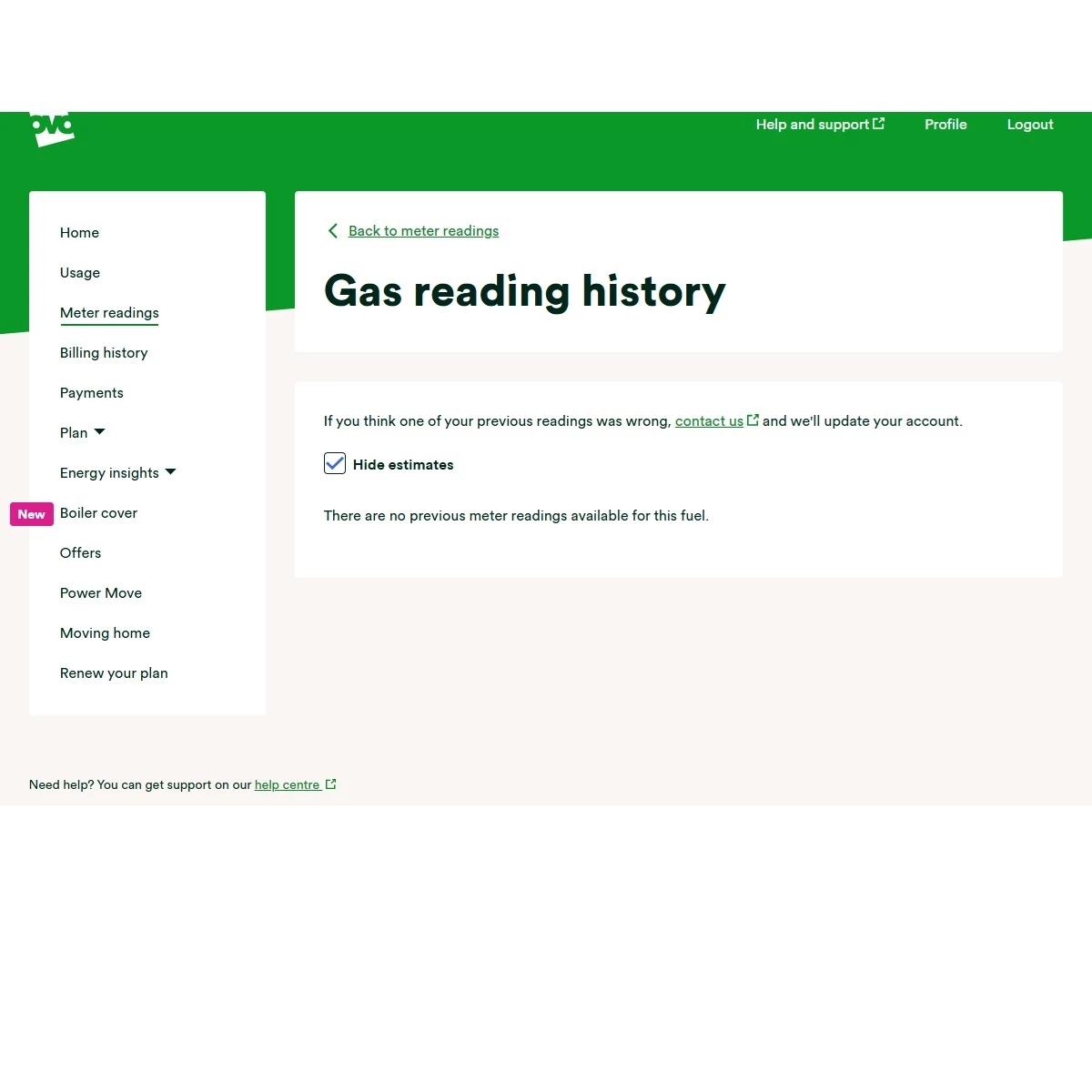 Why has my online account lost my meter reading history for my non-smart gas meter?