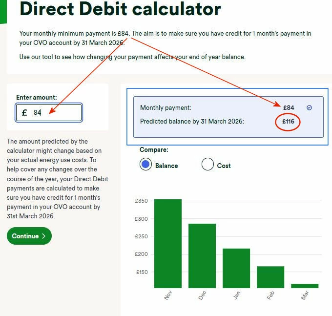 This is why the old system where ACTUAL credit in your account each day was what was used to calculate your DD for the next 365 days. We now have this ridiculous situation where OVO have decided that, for every customer, their billing year ends on March 31st. I am, at present, over £300 in credit and a further £100 will be paid into my OVO account in 5 days time. Even using their DD Calculator and using their £84 minimum payment, even their own calculator does not assess that I will have the required 1 month’s payment in my account, but around 38% more than that. I am not sure whether this is in the spirit of both Ofgem directives about energy companies reducing customer excess balances and discouraging debt.