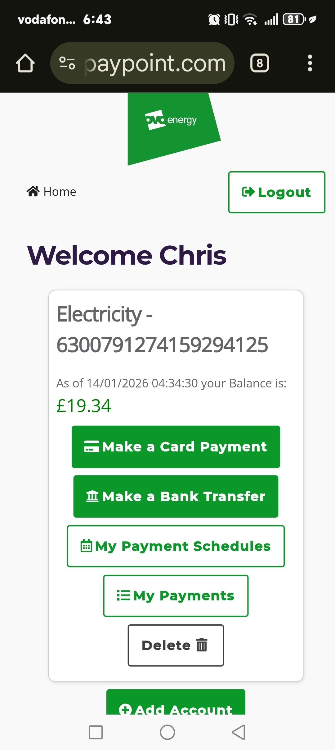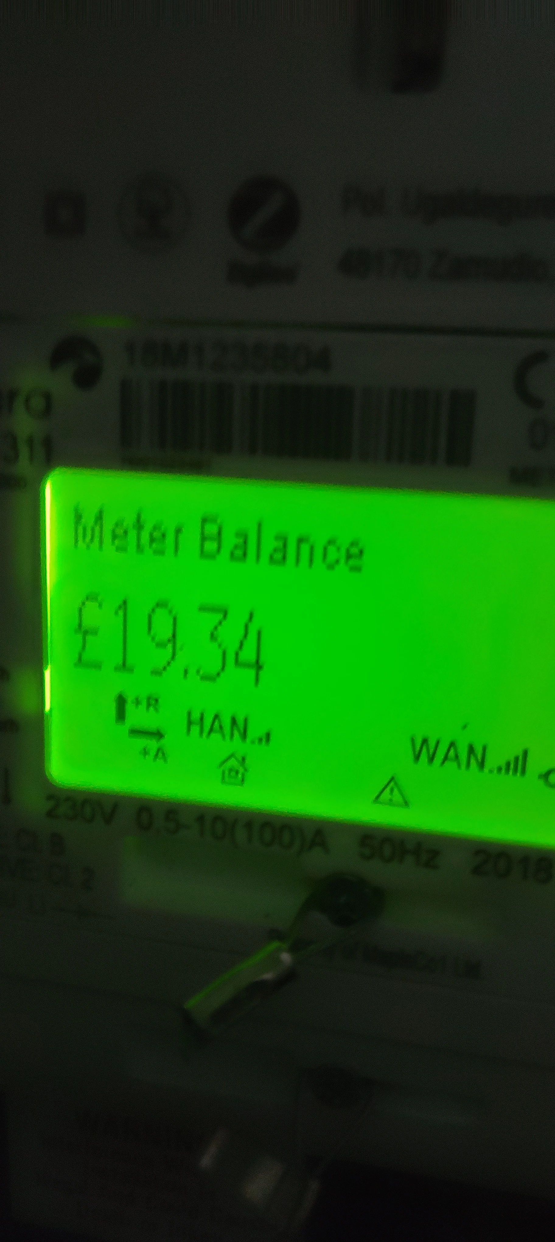 I have checked my main power box out side my house and this display the amount of £19.34.