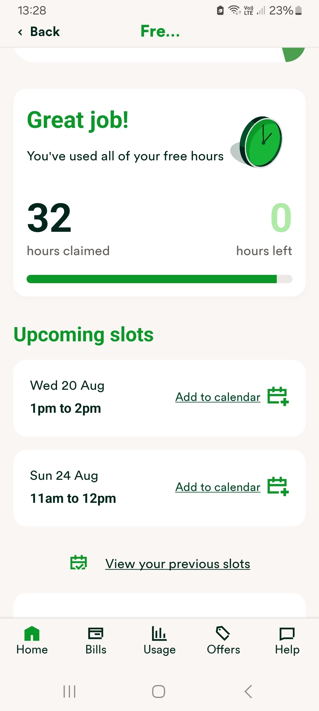You can’t see previous slots but you can see upcoming slots on the app. I’ve left a screenshot of this below: