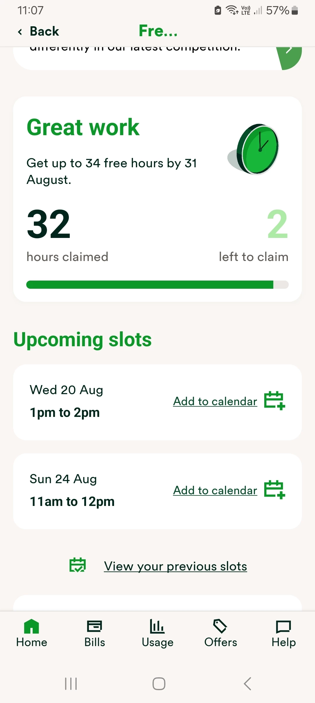 To clarify, are you referring to the free electricity offer for Beyond customers via the app, or are you asking about the new reward system being tested for Power Move Flex trial participants, where you can earn up to 2 hours of free electricity?