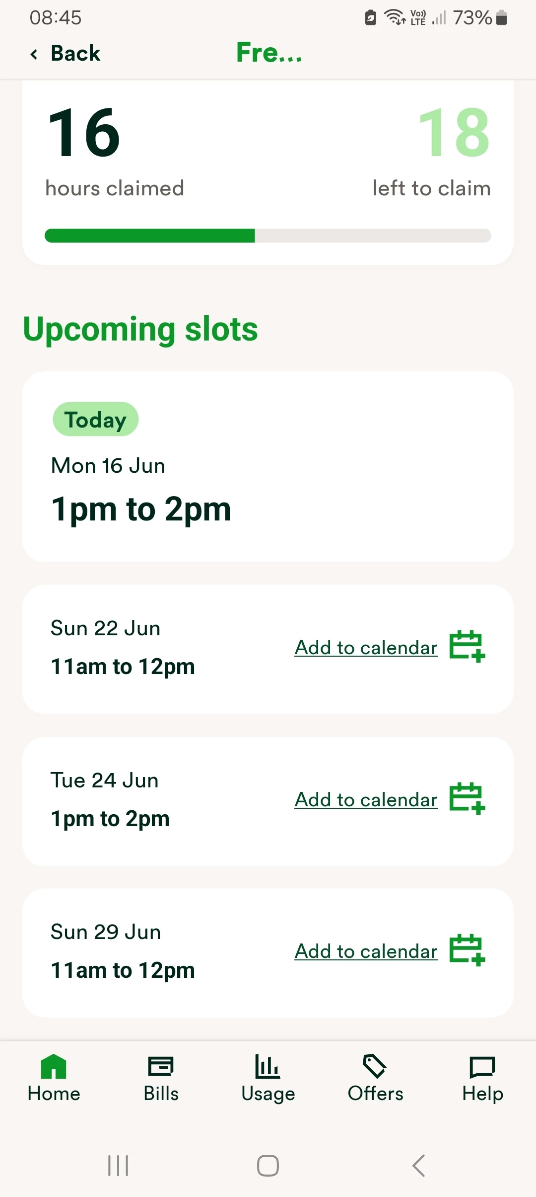I don’t seem to have the option to sign up for the free electricity and choose my time slot. I’ve checked my account and I meet the criteria: direct debit in place, I’m a ‘Beyond’ member and my smart meters send half-hourly readings.