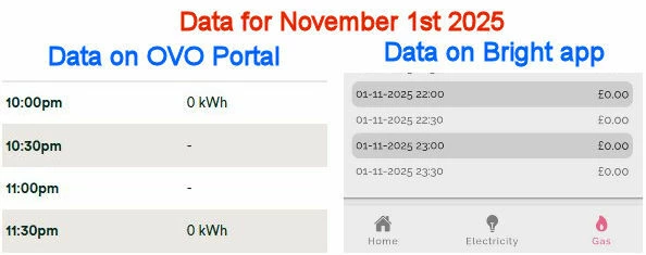 As you can see, OVO acknowledge this is a “known issue”. Knowing this, I wonder how and why it was decided to offer a “time of use” initiative for gas users. Earlier in the email, I was told that any missing data is a DCC issue. I still wonder why almost all of my missing data occurs at the same time.