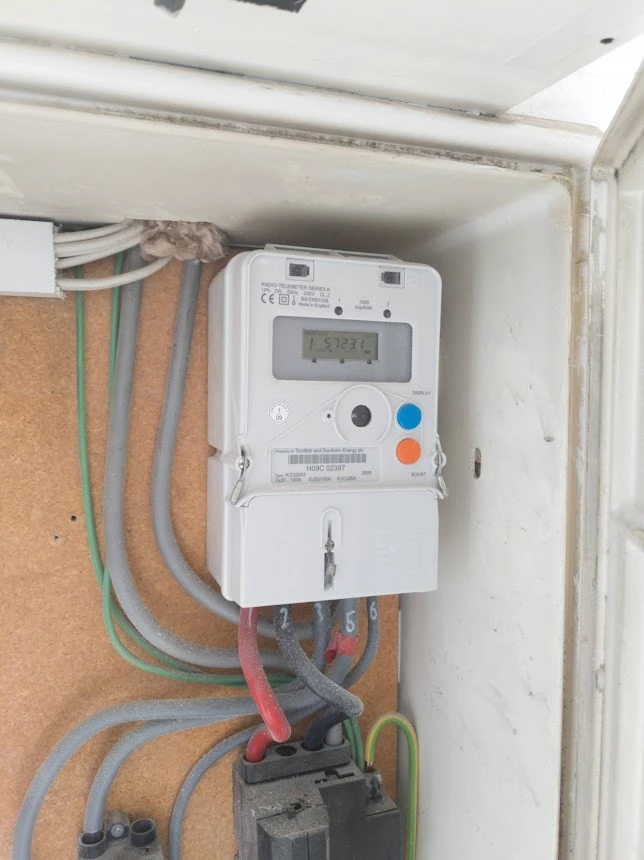 The annexe meters are shown in next pictures. Again, the heating, water and shower go through the THTC meter and the other circuits go through the standard meter.
