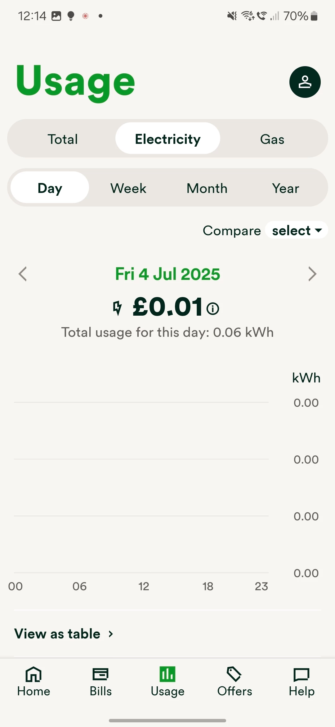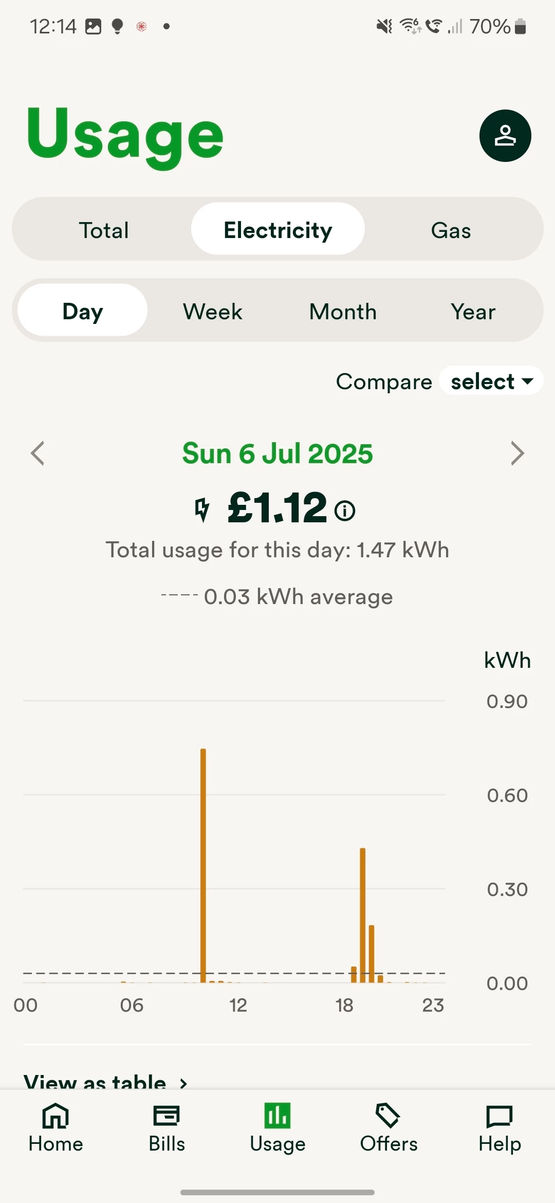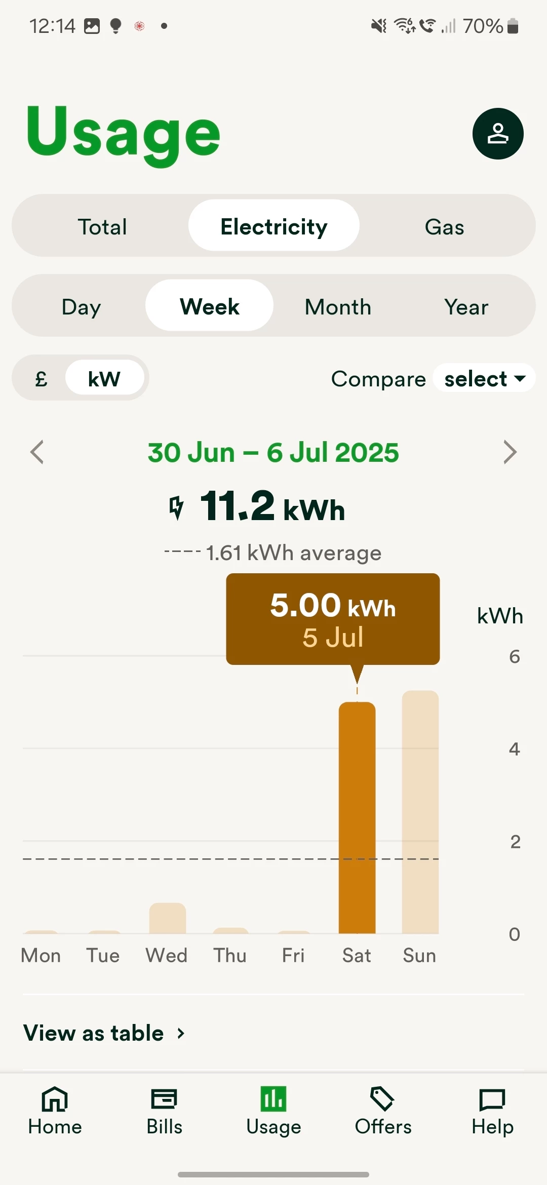 Something fishy is going on with the usage days. I have solar panels with battery so it's not uncommon for my electricity usage to be pennies (as seen in screenshots from early last week). But then for a similar amount of kWh usage, for some reason the app is saying we owe £1. What's more if I go into the weekly view, it's saying we've used over 5kWh for those days, which not only doesn't line up with the daily view, it also doesn't align with the meter readings or the solar battery readings and would be an incredible outlier. I know the usage data goes buggy from time to time but very concerned it's for 3 days now recording 100 x the actual usage.