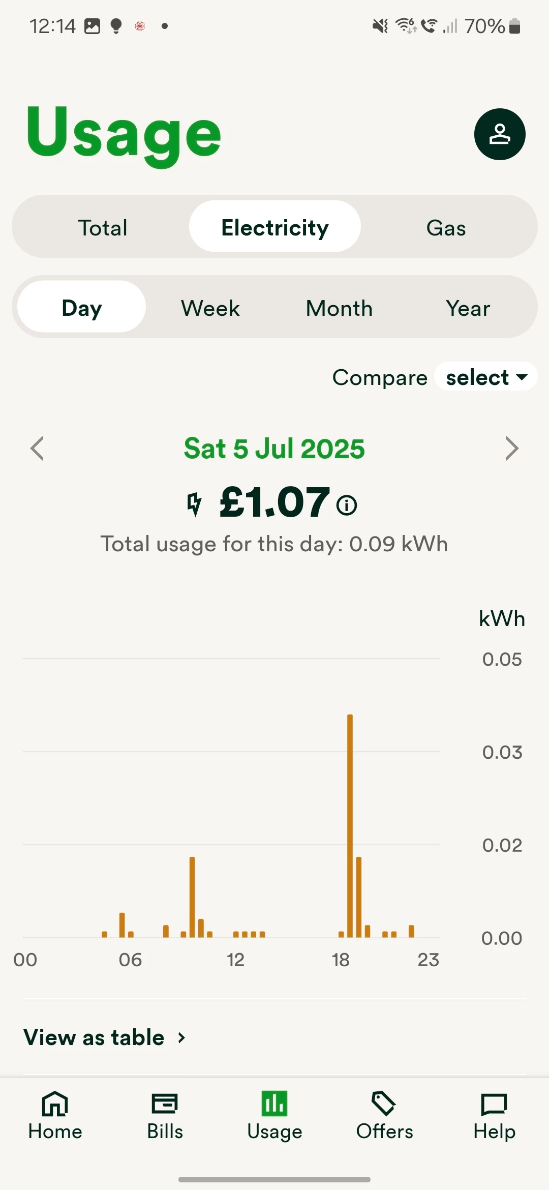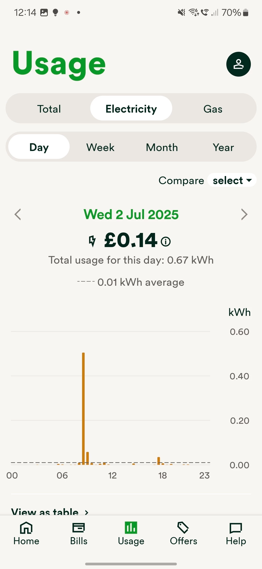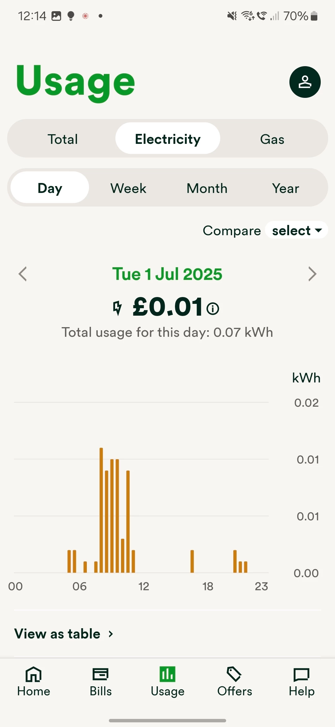 Something fishy is going on with the usage days. I have solar panels with battery so it's not uncommon for my electricity usage to be pennies (as seen in screenshots from early last week). But then for a similar amount of kWh usage, for some reason the app is saying we owe £1. What's more if I go into the weekly view, it's saying we've used over 5kWh for those days, which not only doesn't line up with the daily view, it also doesn't align with the meter readings or the solar battery readings and would be an incredible outlier. I know the usage data goes buggy from time to time but very concerned it's for 3 days now recording 100 x the actual usage.