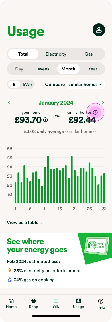 We’re working on some new features in the Usage screen and would really appreciate your input. We’re trying to understand how valuable it is to be able to compare your home’s energy use to a benchmark.