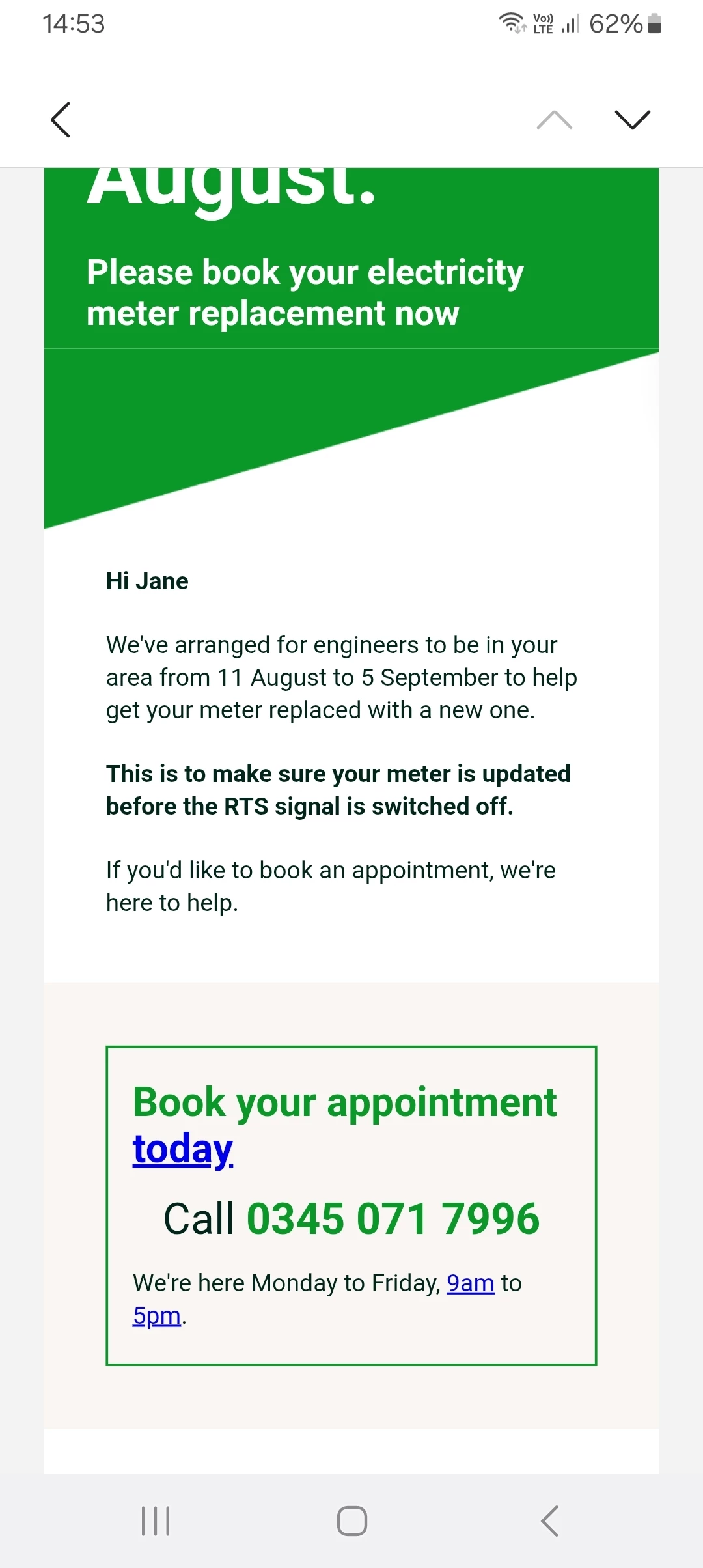 Hi, I live in Dundee, Scotland which is a fairly large city, senior citizen currently on pre payment meter THTC and know all about the RTS switch off. Made arrangements with OVO to change over to pay as you go Smart meter, Engineer arrived yesterday and couldn't do the switch as the Smart meter failed to connect, he sent the relevant information to OVO that no installation had been made, what happens next?